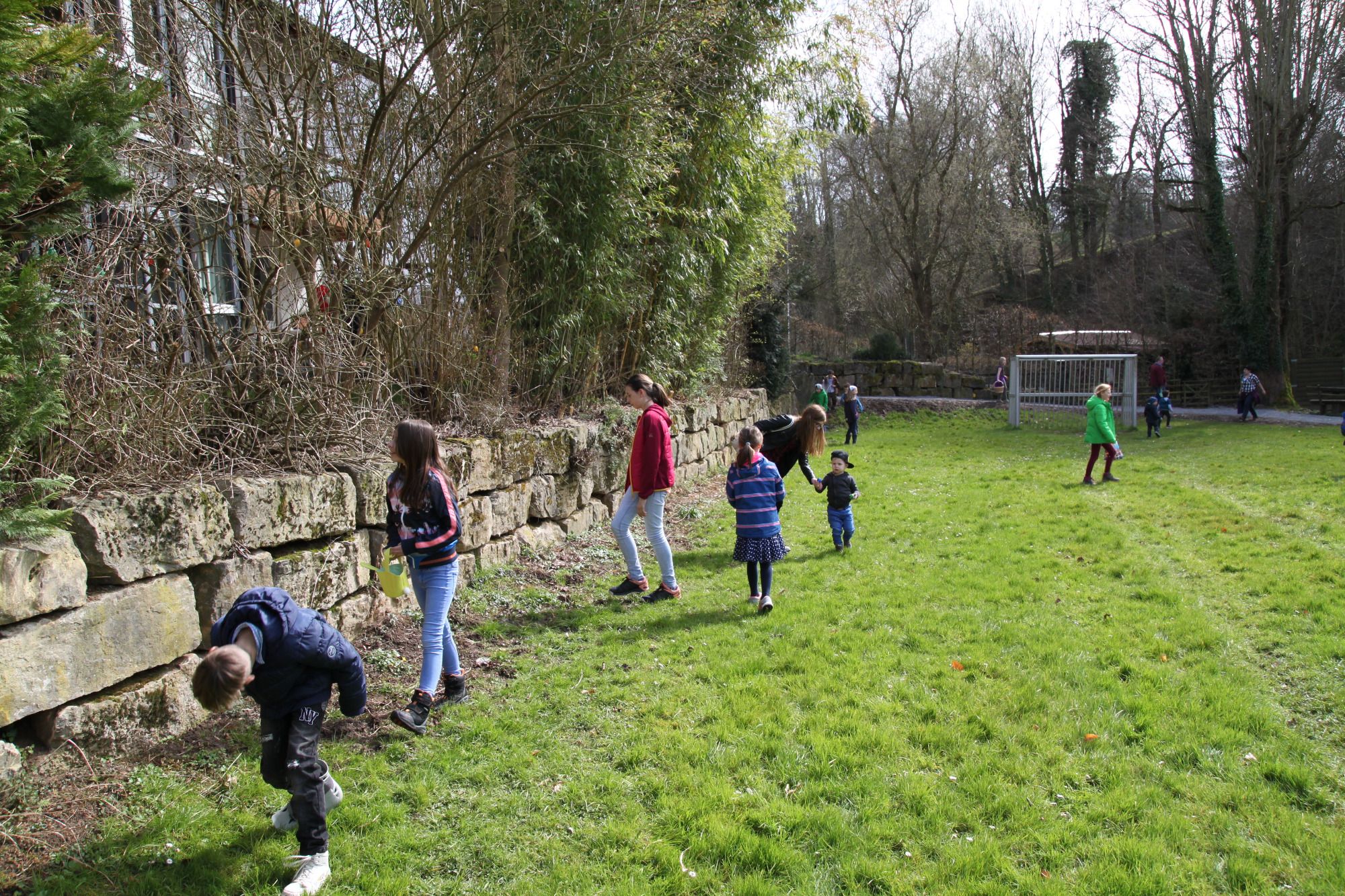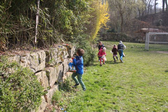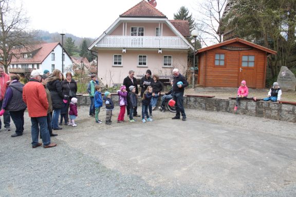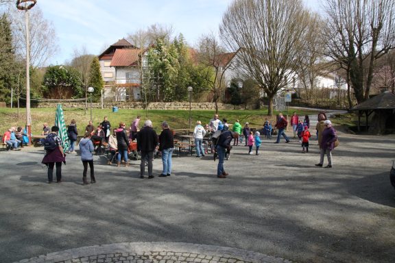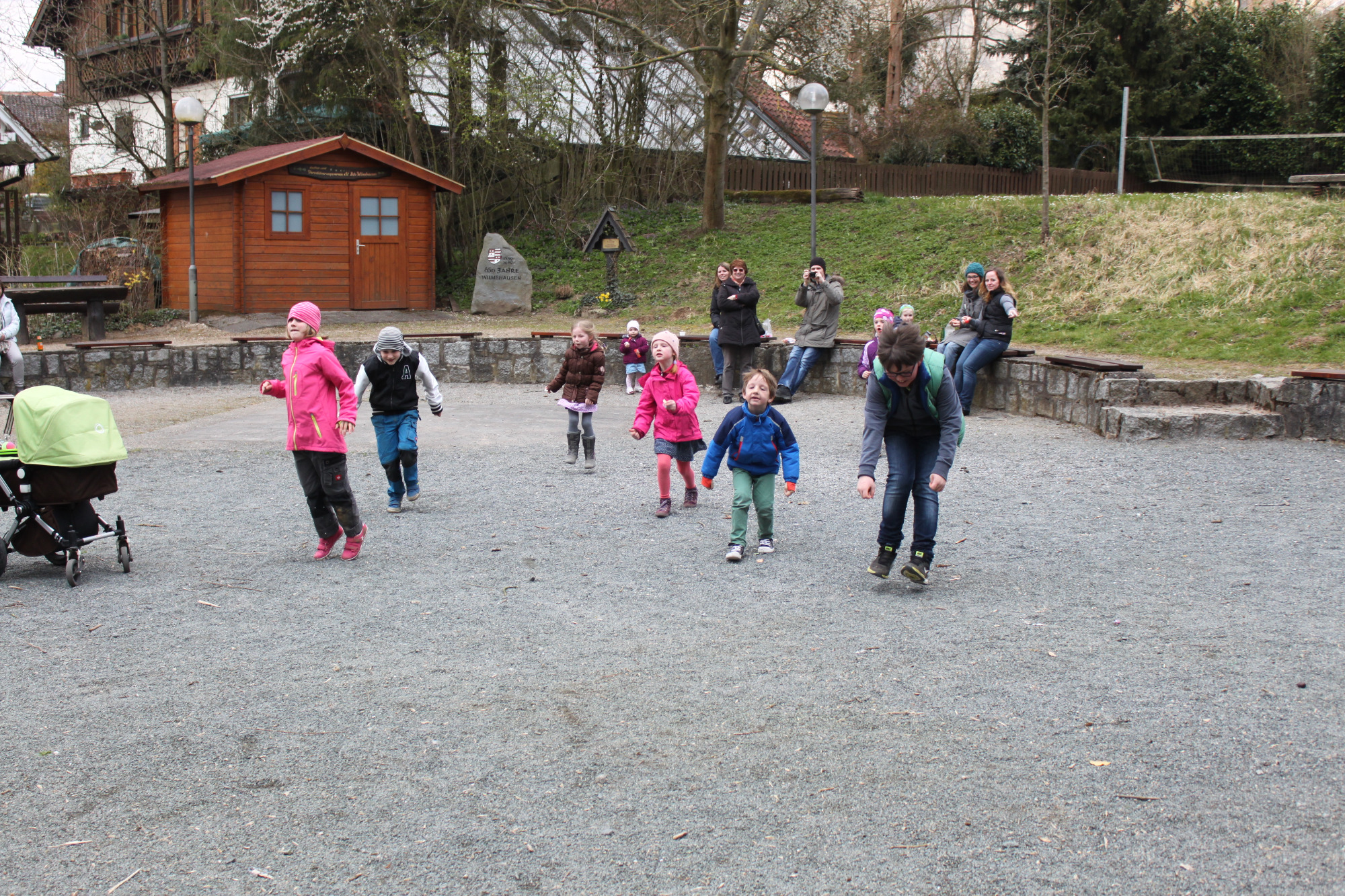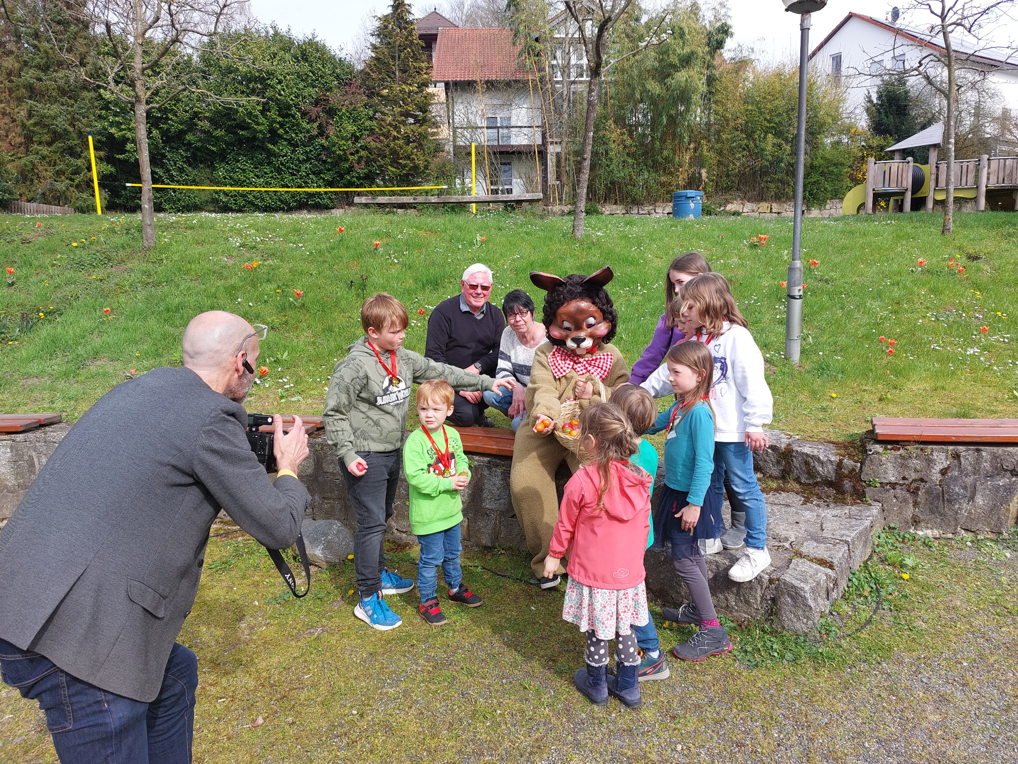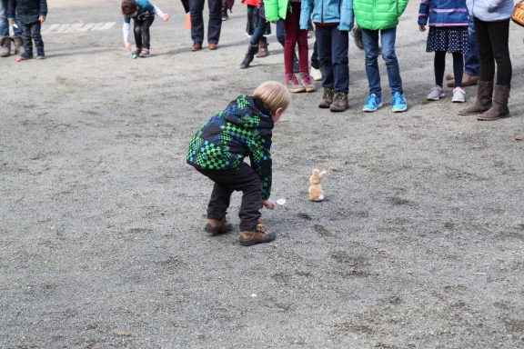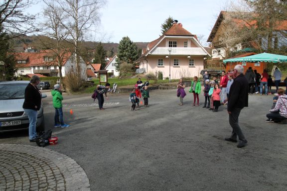 Wieder Ostereiersuche auf dem Dorfplatz.