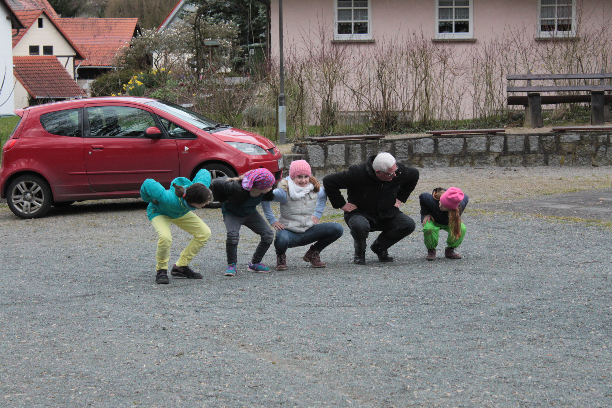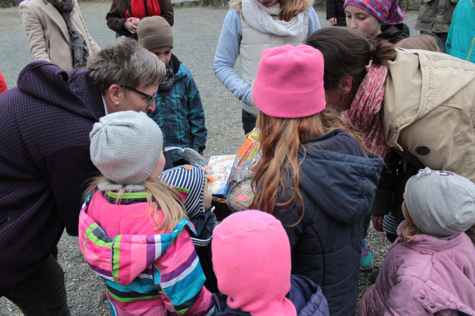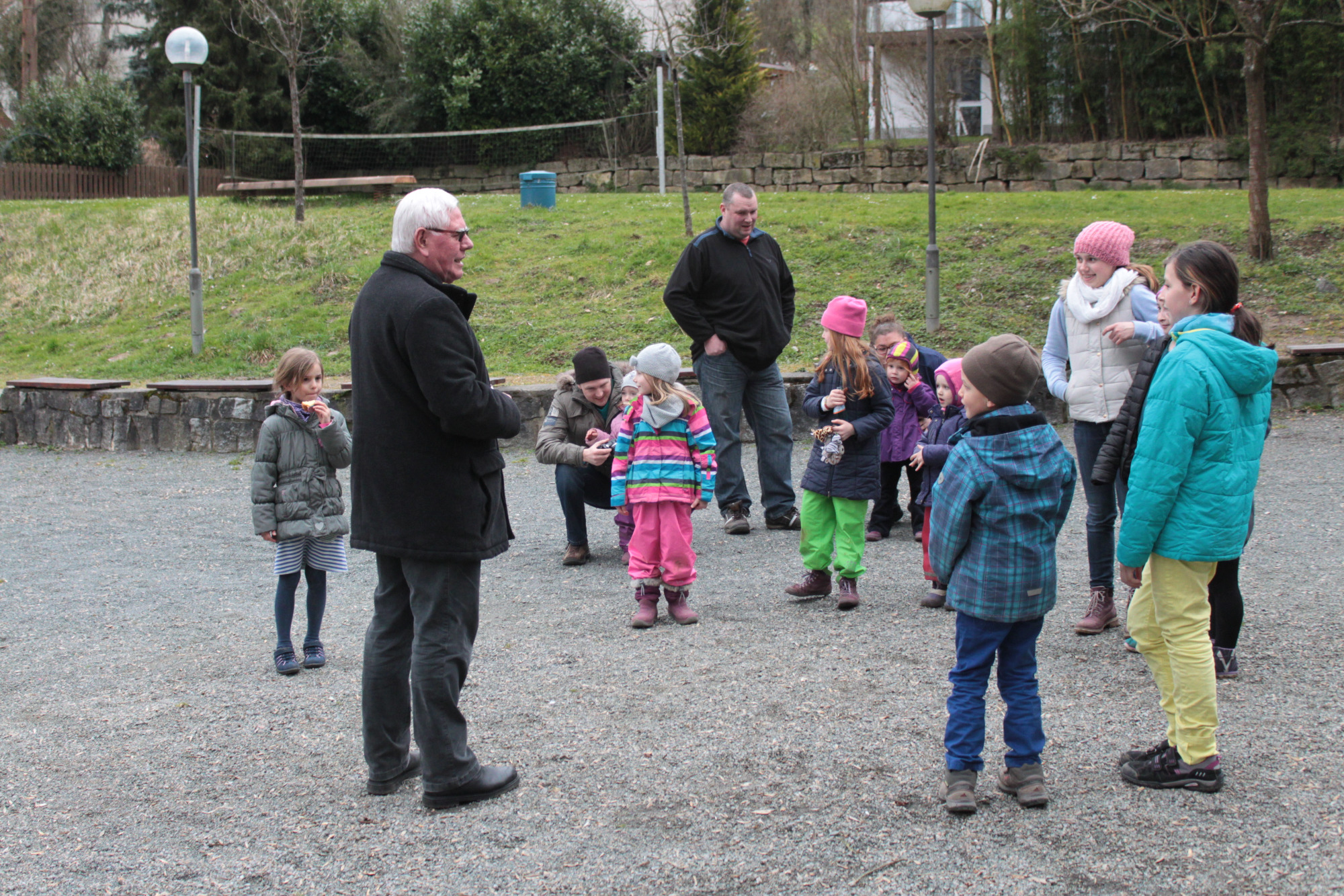 Wieder Ostereiersuche auf dem Dorfplatz.