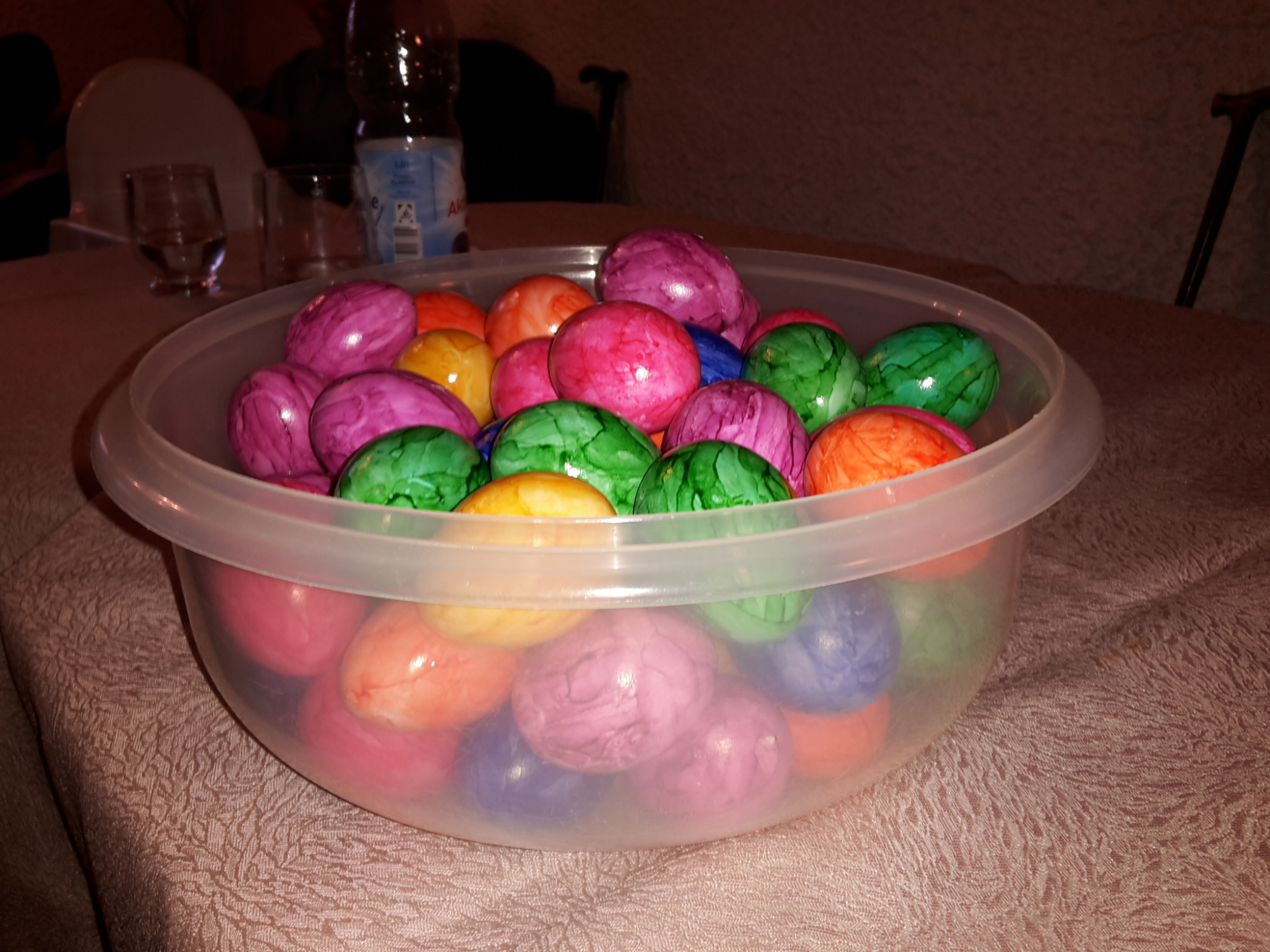 Ostermontag: Zeit für Ostereiersuchen. Die Sonne schien zwar, aber es war so kalt, dass man keinen Hund vor die Türe schicken wollte. Daher wurde die Ostereiersuche kurzerhand ins Gemeinschaftshaus verlegt.