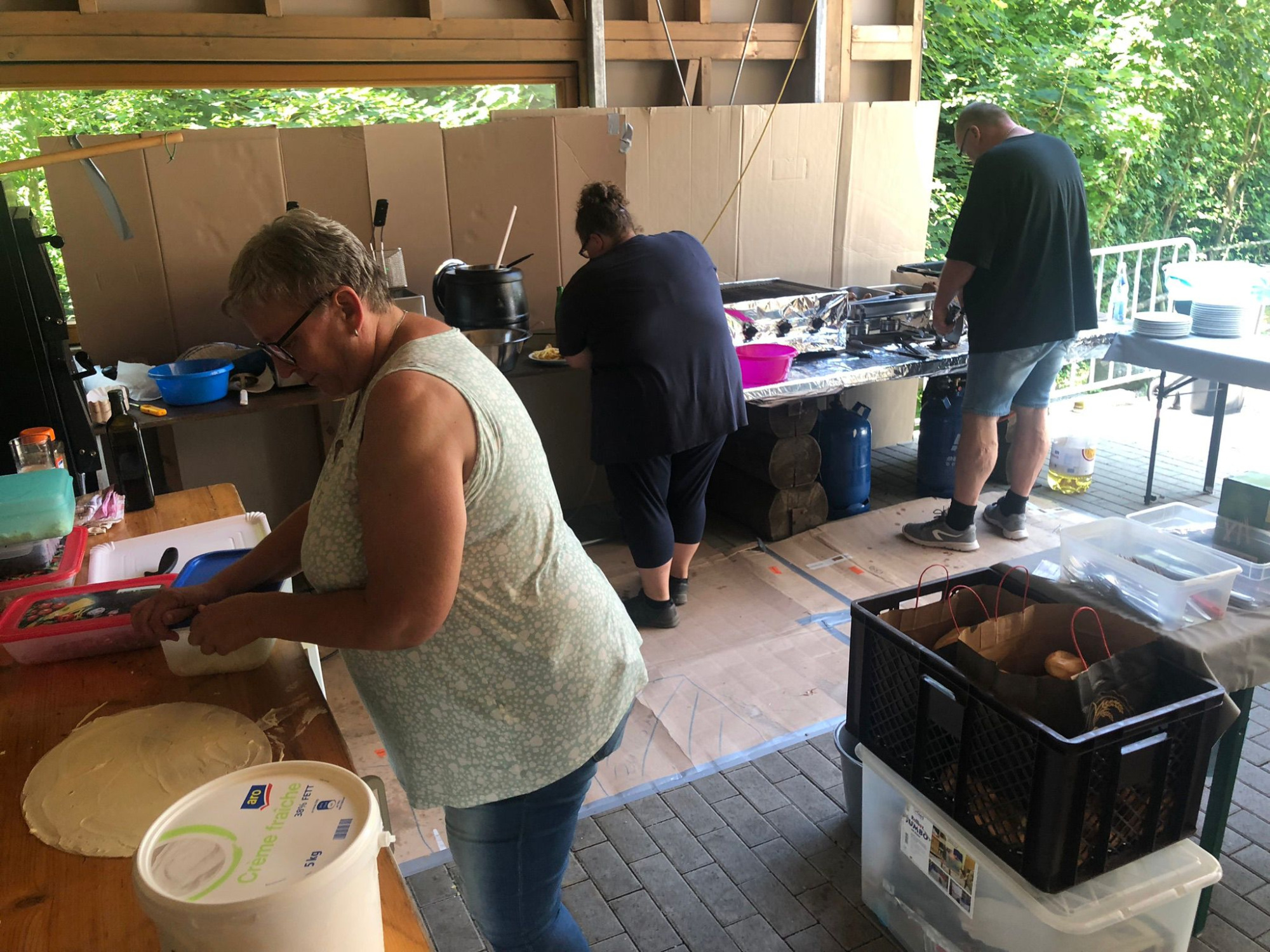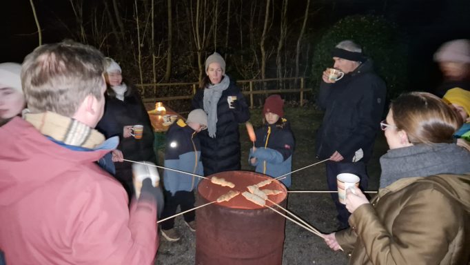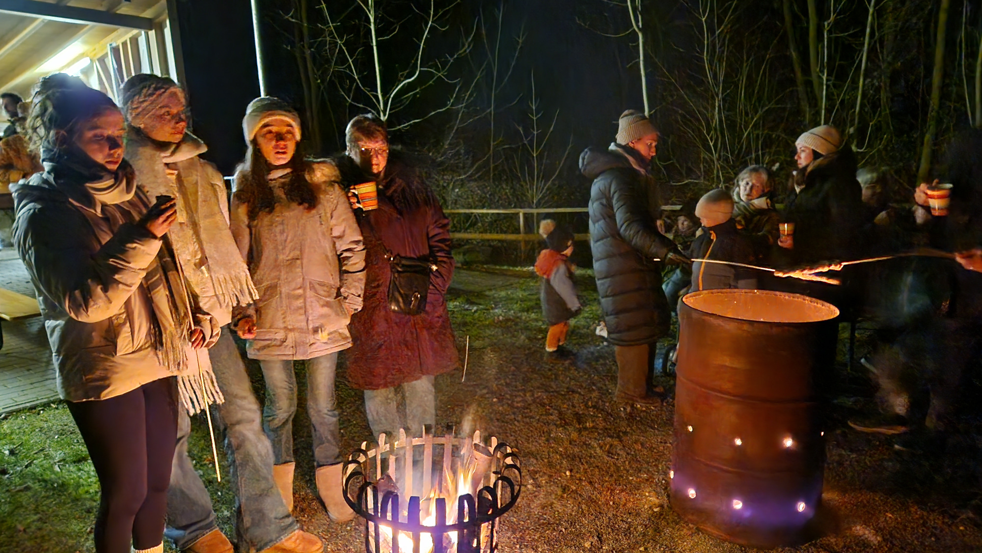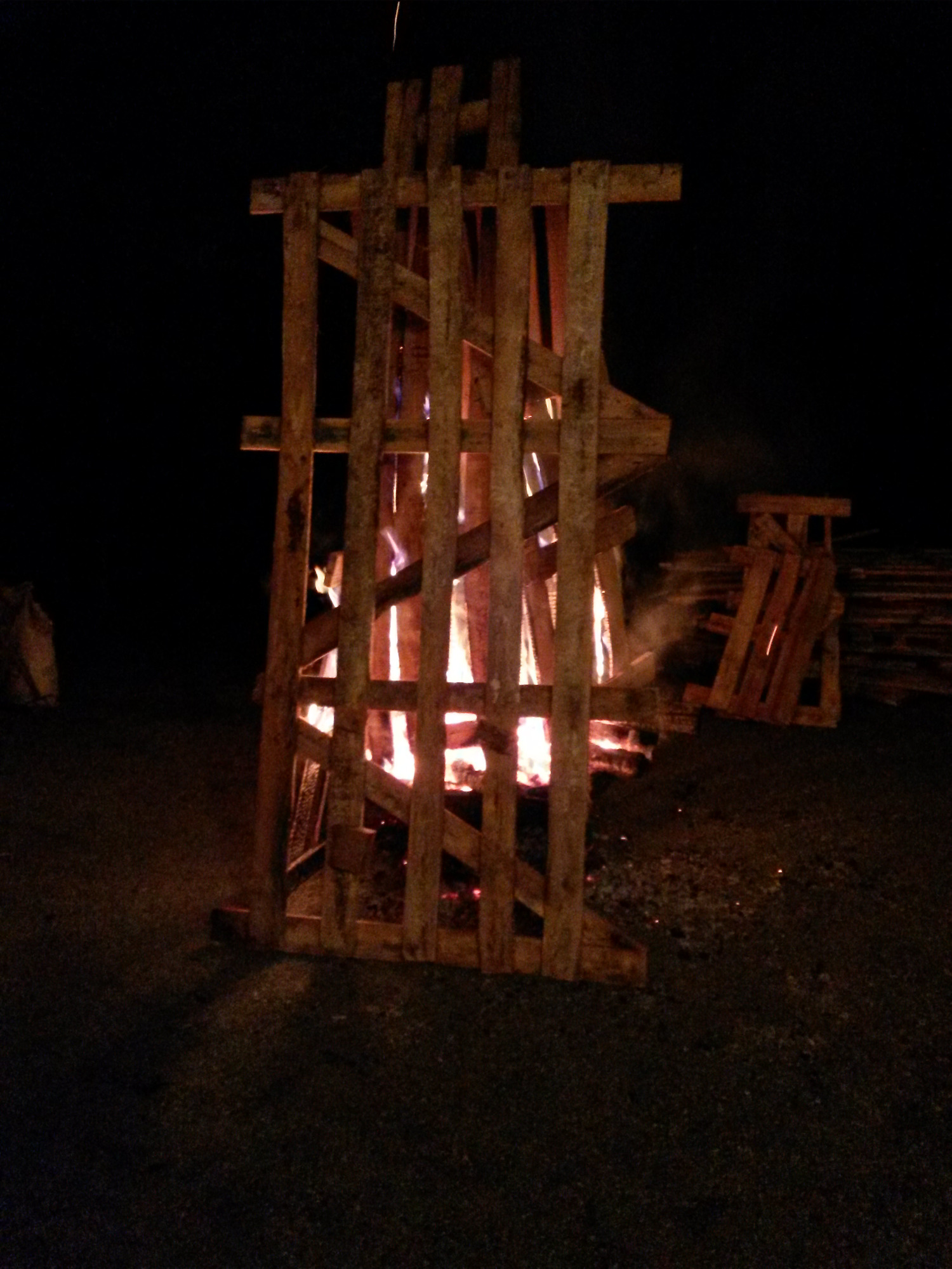 Das Jahr wird abgeschlossen mit einem zünftigen Feuer auf dem Dorfplatz. Die Glut war nach einer Woche noch heiß. Dazu wurde im Zelt gefeiert.