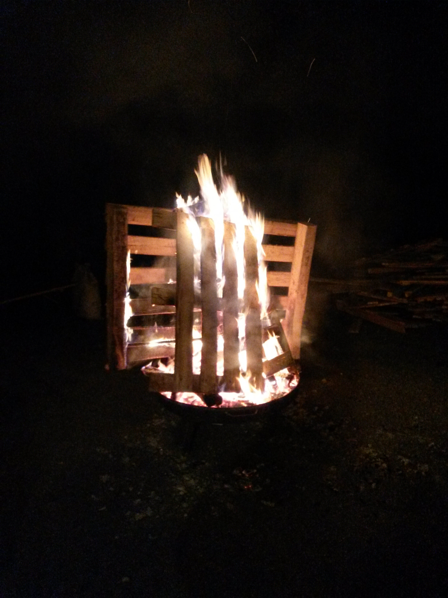 Zum Jahresabschluss ein Feuer auf dem Dorfplatz.