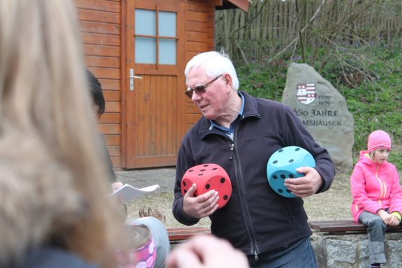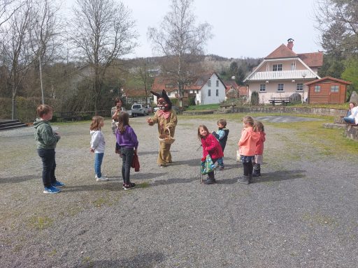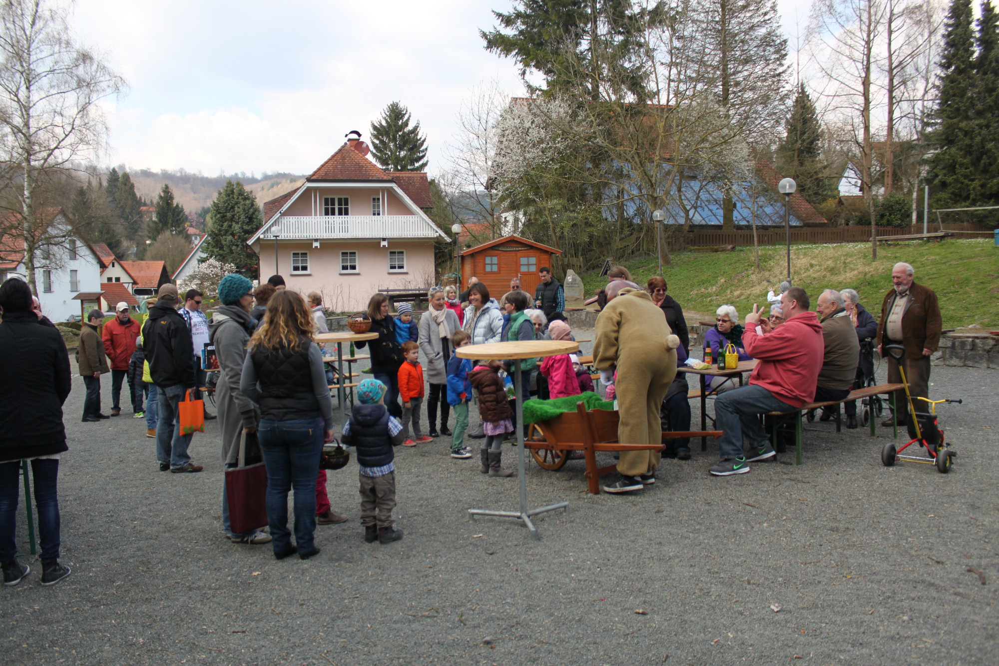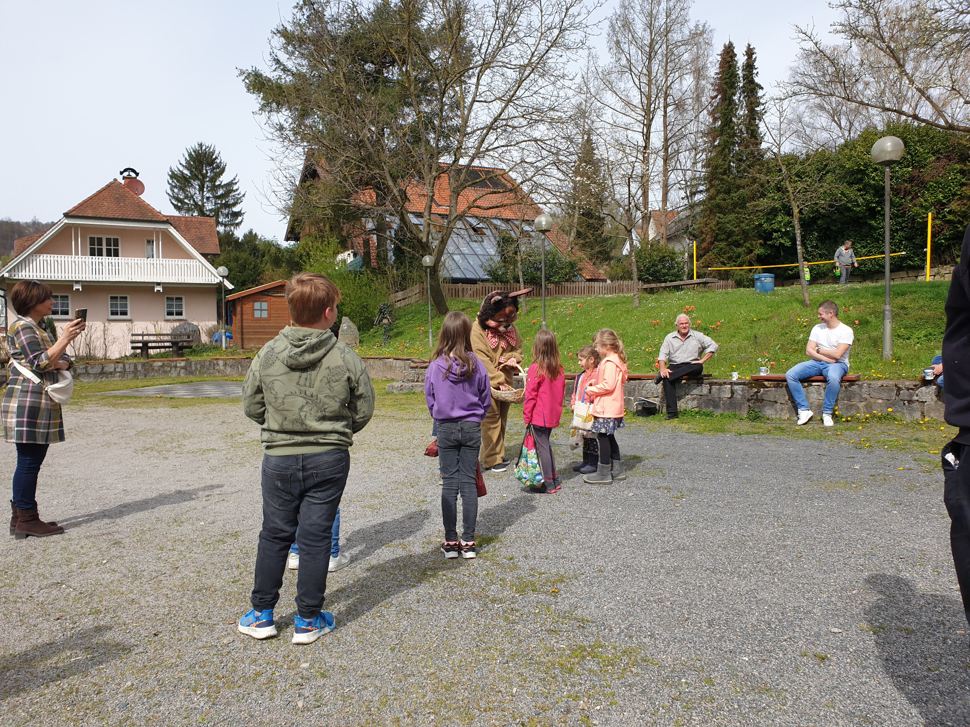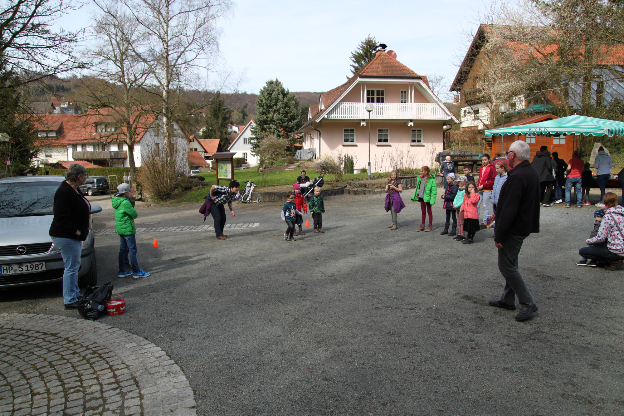 Ostereiersuche auf dem Dorfplatz mit Spaß und Spiel für Jung und Alt.