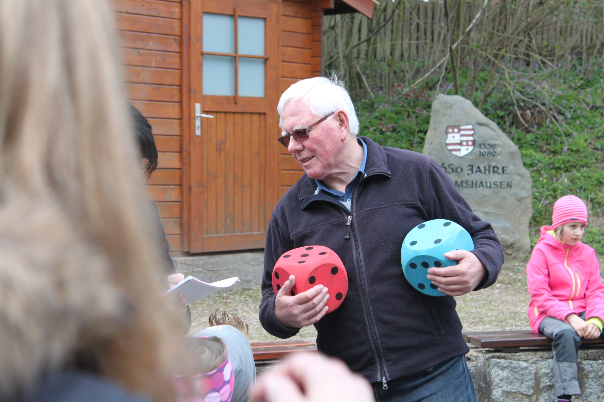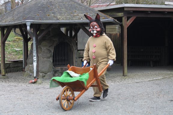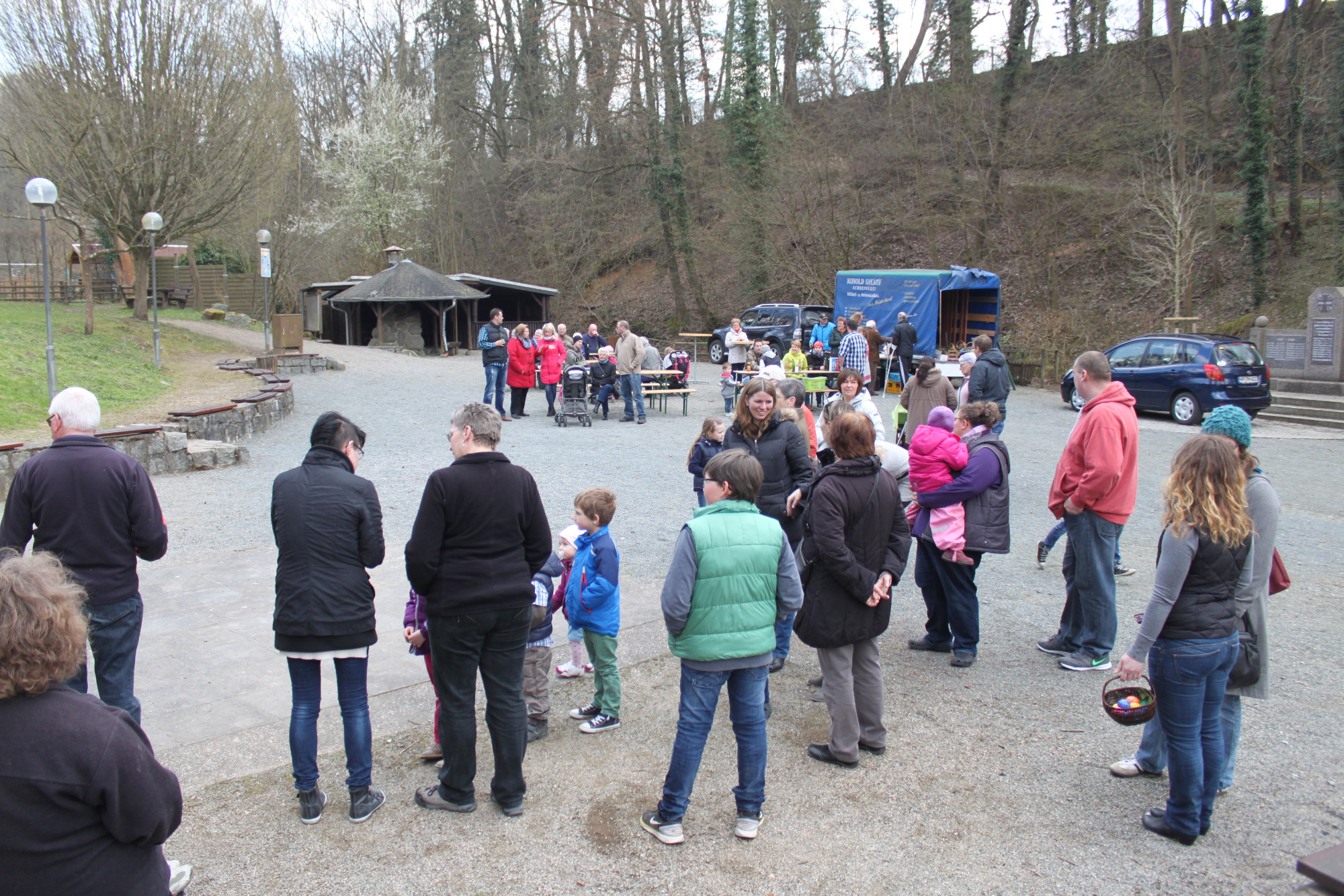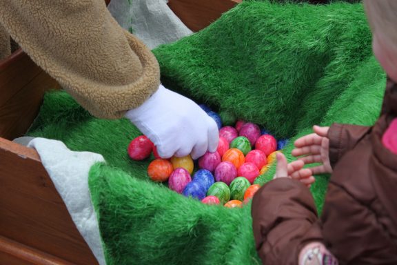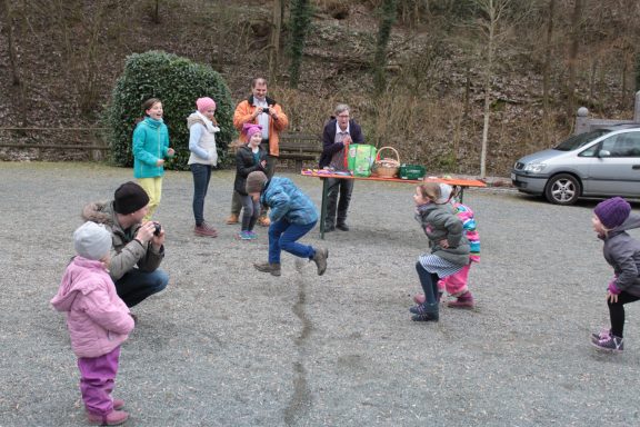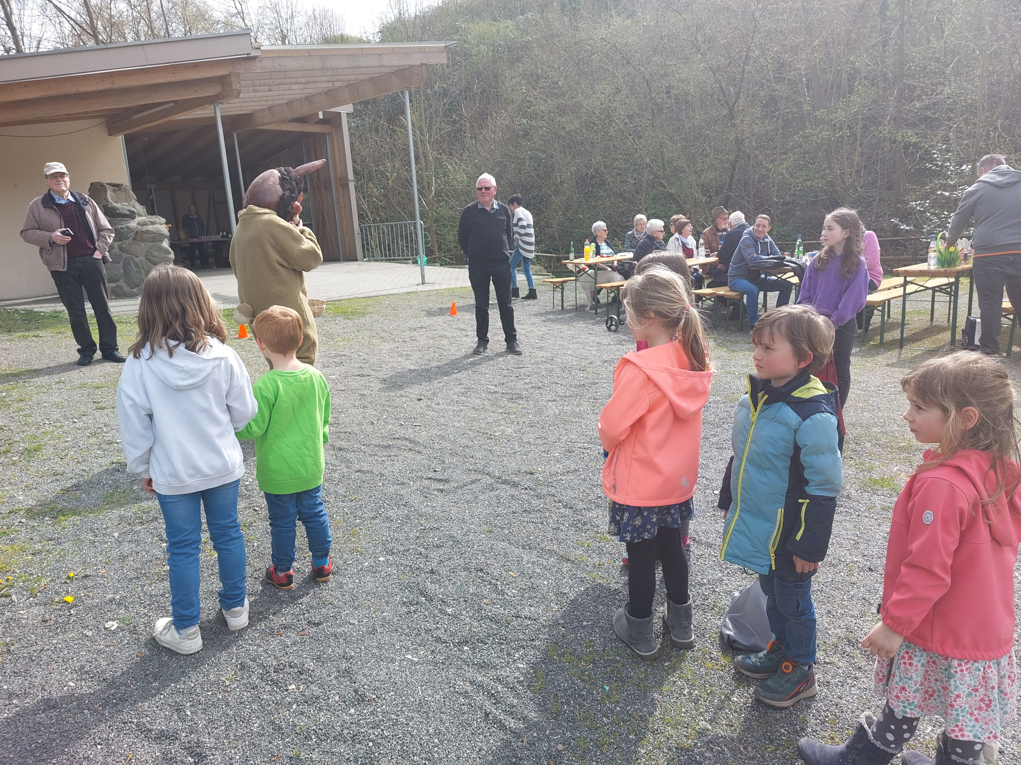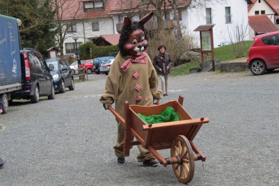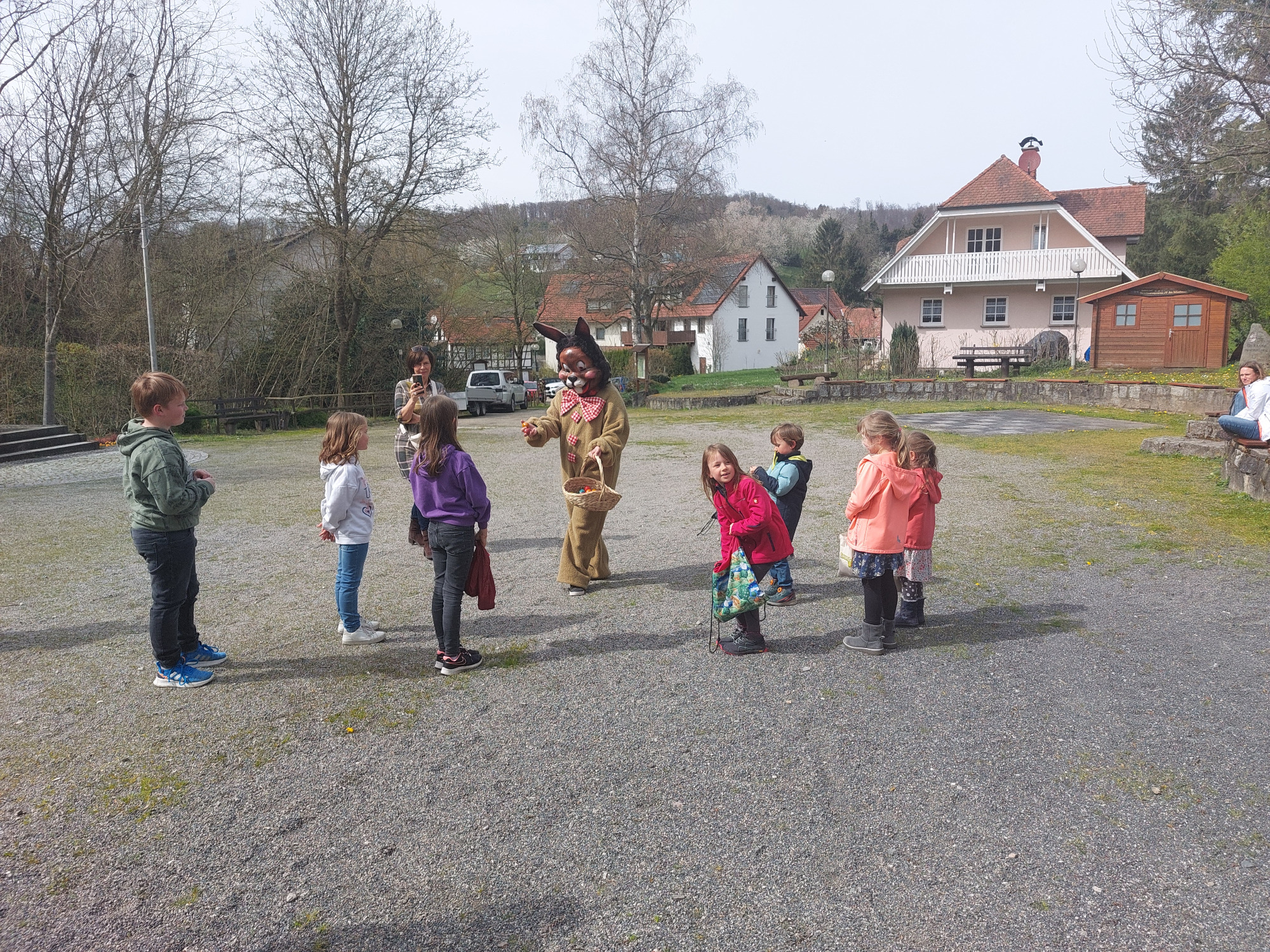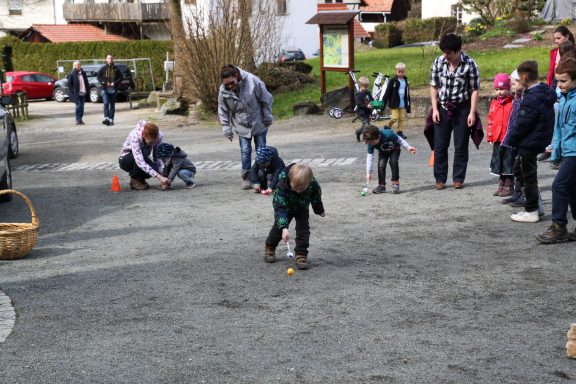 Zu Ostern das traditionelle Ostereiersuchen auf dem Dorfplatz mit Spaß und Spiel