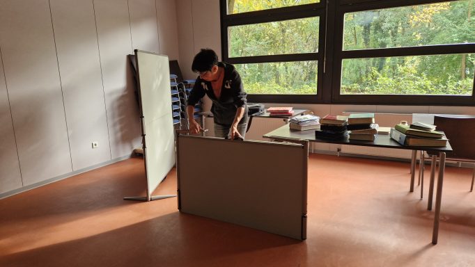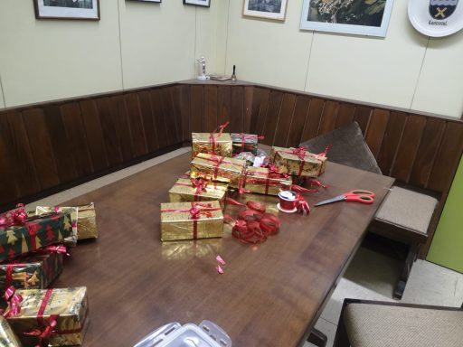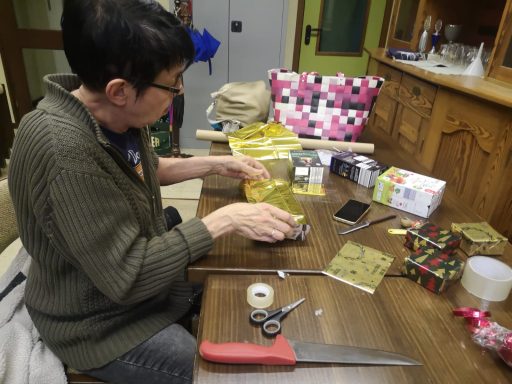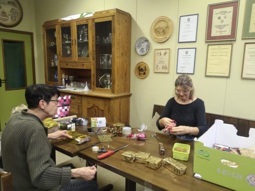 Vorbereitung zum Weihnachtsbaum-Schmücken im Vereinszimmer