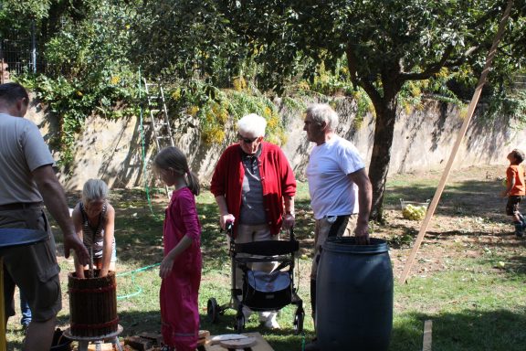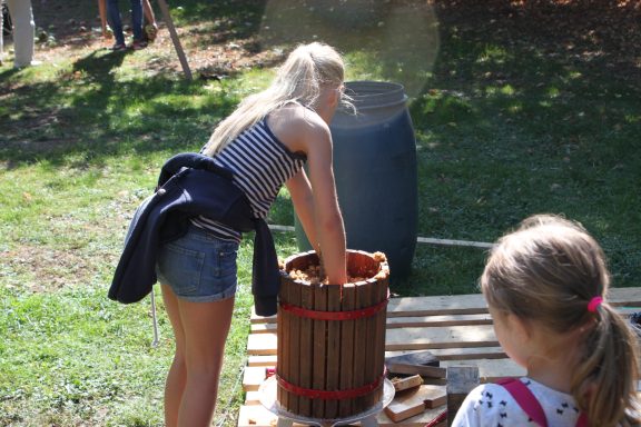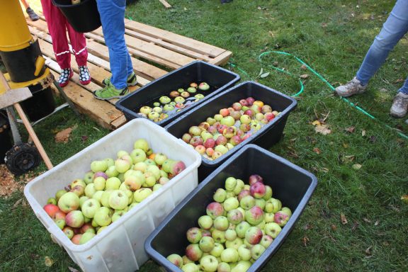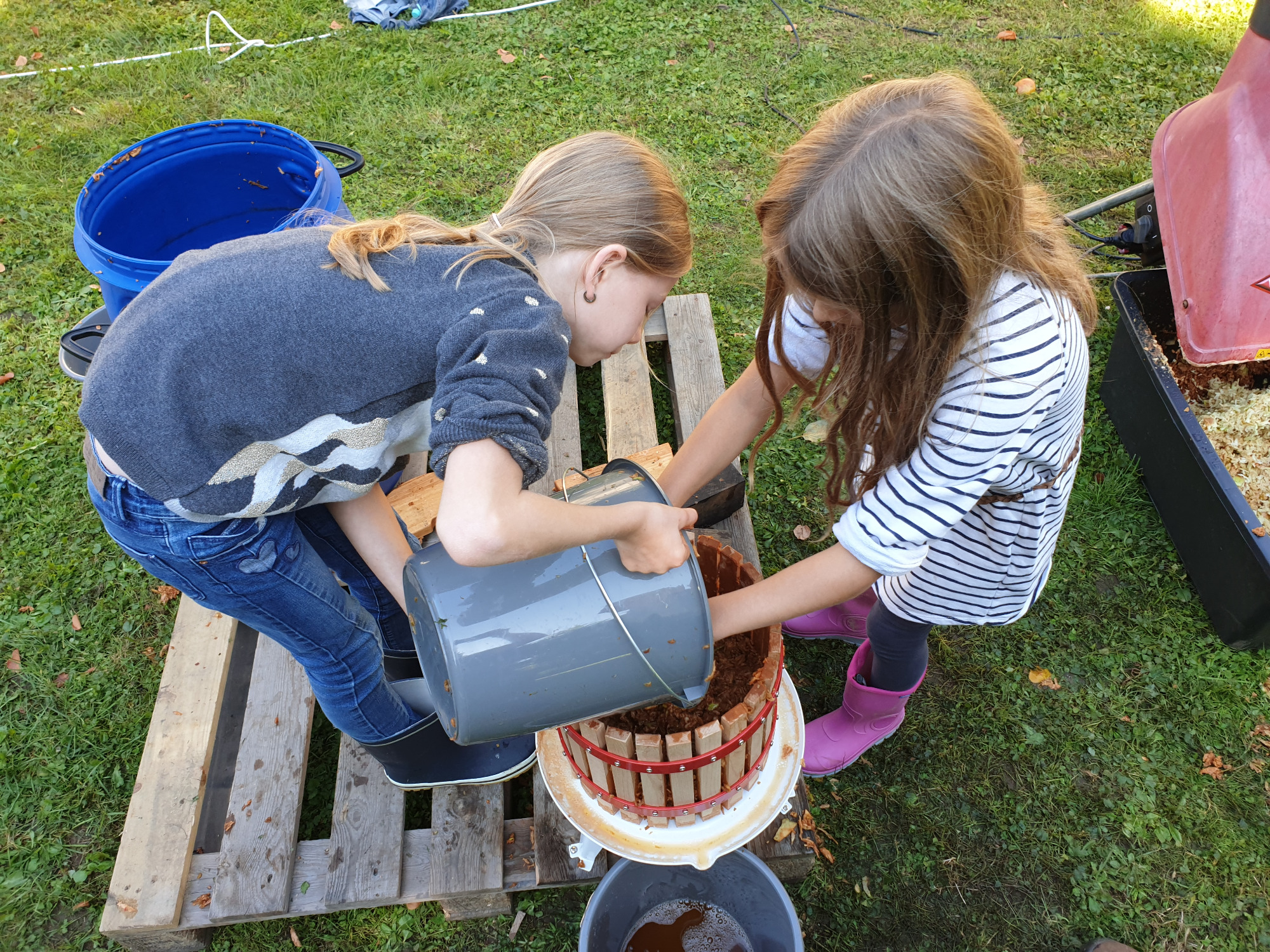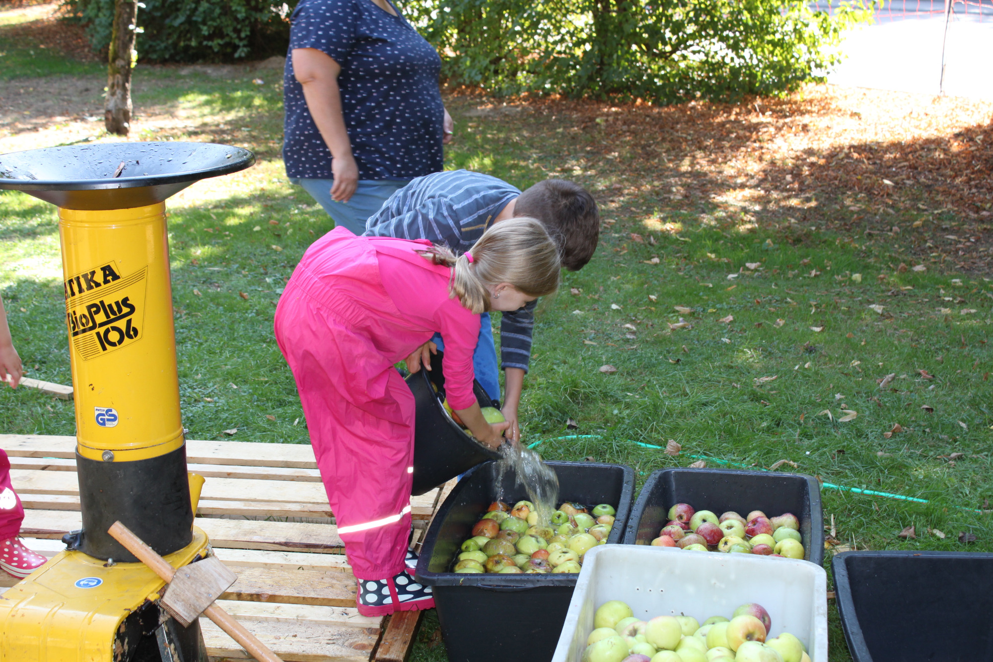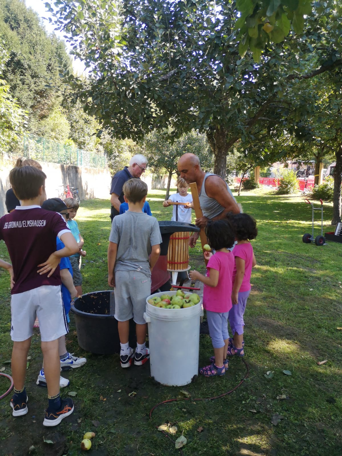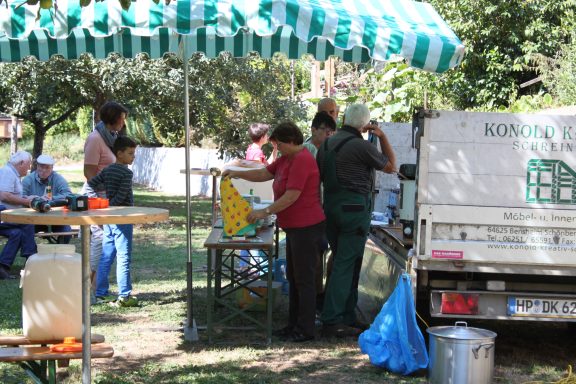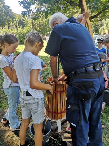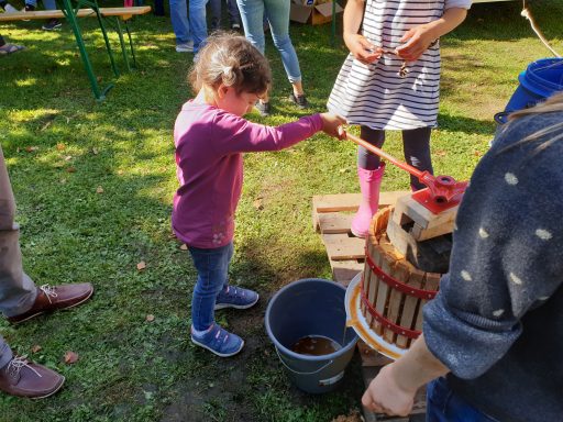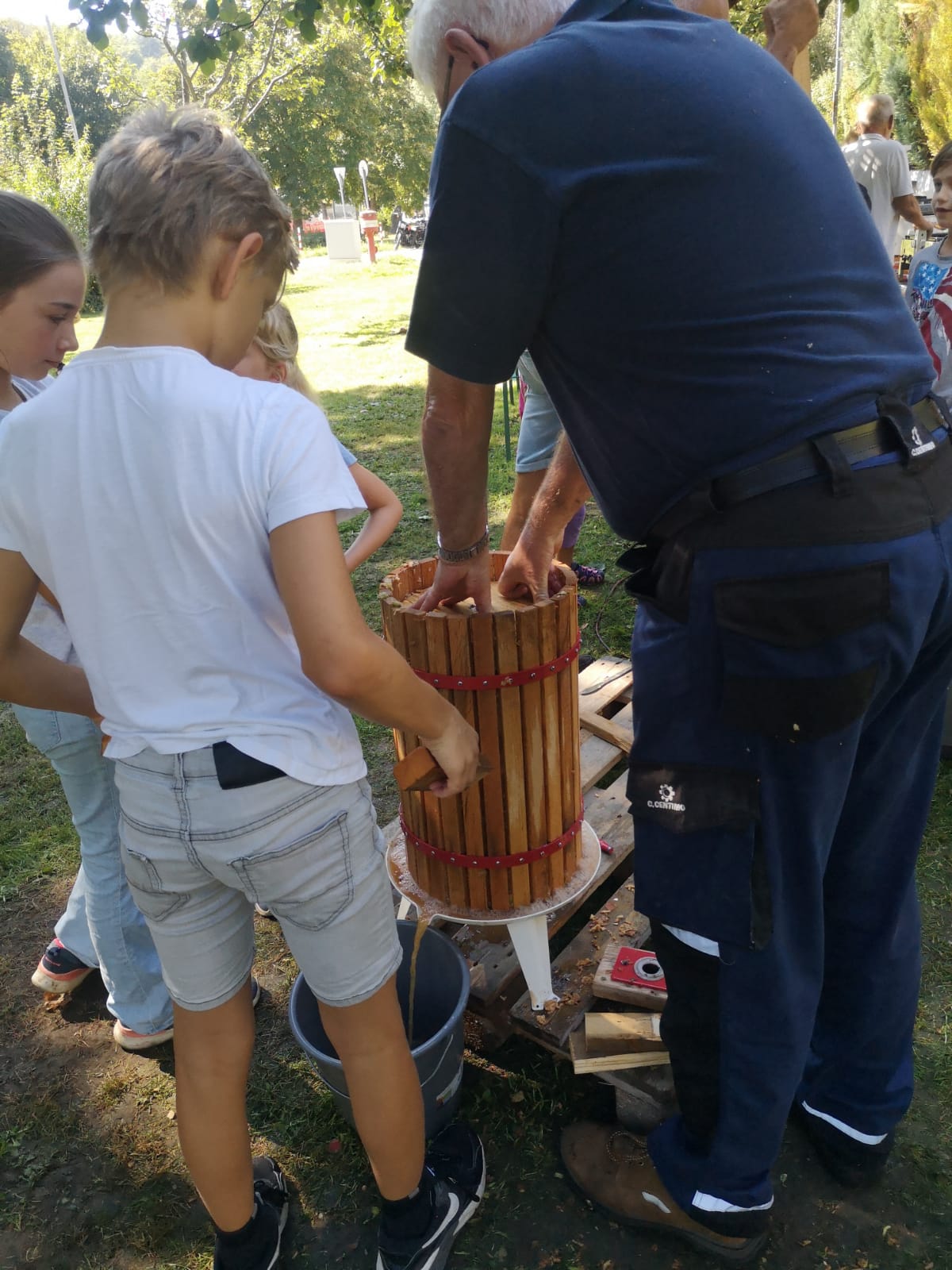 Auch 2019 gab es ein Kelterfest auf der Streuobstwiese am GH. Ein Spaß für die Kinder und die Großen.