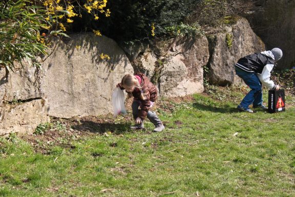 Am zweiten Osterfeiertag ist Ostereiersuchen auf dem Dorfplatz
