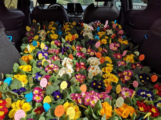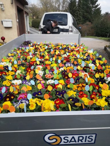 Ein Frühlingsgruß wird an jeden Haushalt verteilt. Hierzu ist einiges an Vorbereitung zu treffen.