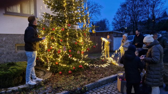 Weihnachtsbaum schmücken am Steinernen Eck mit gemütlichem Beisammensein